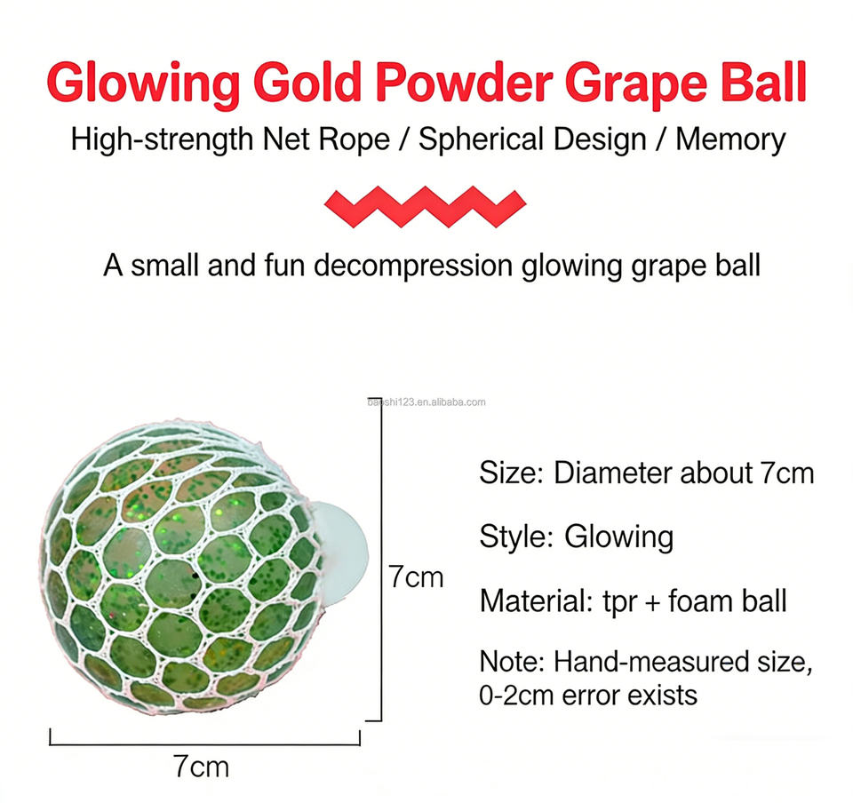 ลูกบอลบีบ TPR รูปองุ่นหลากสีขนาด 7 ซม. ของเล่นบีบคลายเครียด ของเล่นบีบยืดหยุ่นสร้างสรรค์ สำหรับบรรเทาความวิตกกังวล