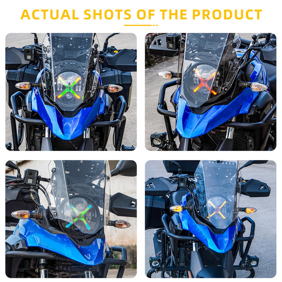 ไฟหน้าทรง X ขนาด 7 นิ้ว แบบรมดำ รุ่นใหม่ พร้อมไฟ DRL RGB สีสันสดใส มาตรฐานกันน้ำ IP67 วัสดุอะลูมิเนียมหล่อขึ้นรูป สำหรับรถซูซูกิ รุ่น DL250