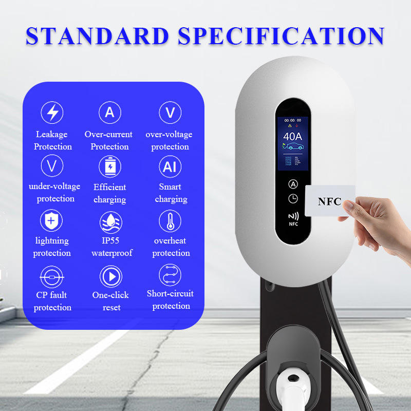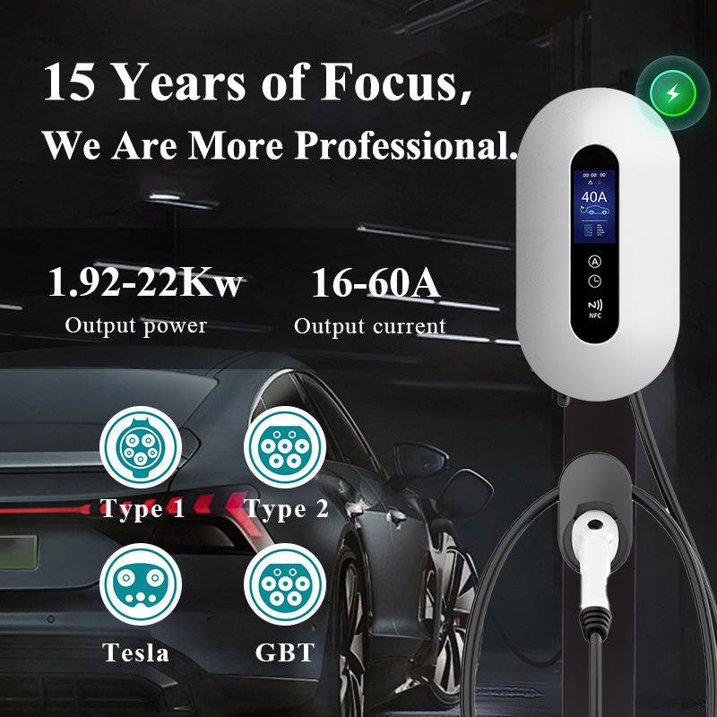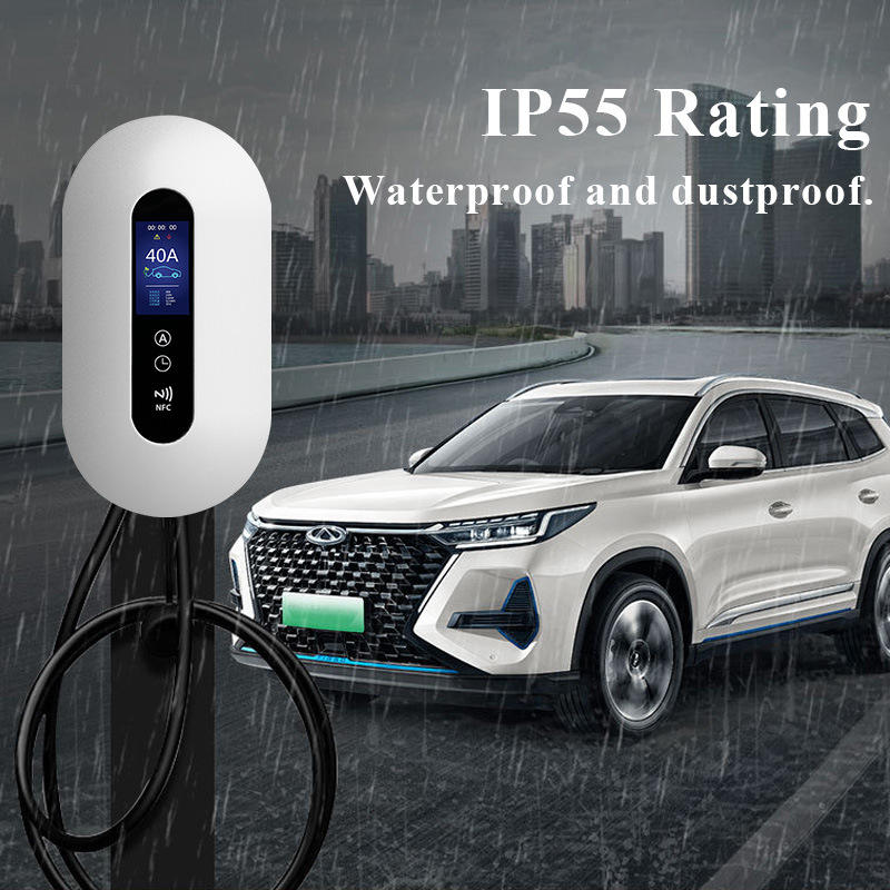 เครื่องชาร์จรถยนต์ไฟฟ้าแบบติดผนัง 7kW AC พร้อมหน้าจอ LED และมาตรฐาน IP67 สำหรับสถานีชาร์จในบ้าน โรงรถ 32A เหมาะสำหรับการเดินทางและการตั้งแคมป์