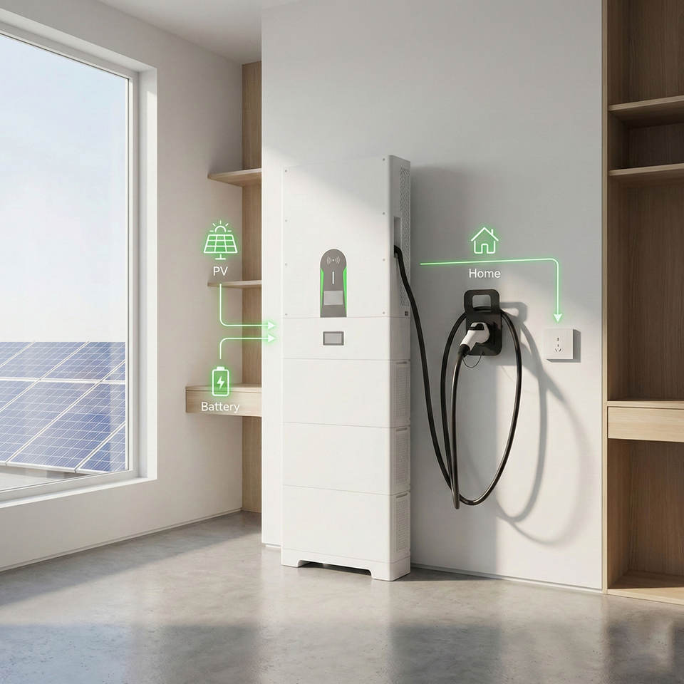 7kW V2G V2H ระบบจัดเก็บพลังงานในบ้านแบบไฮบริดที่ชาร์จแบบสองทิศทาง DC EV CCS2 5 10 15kWh LFP