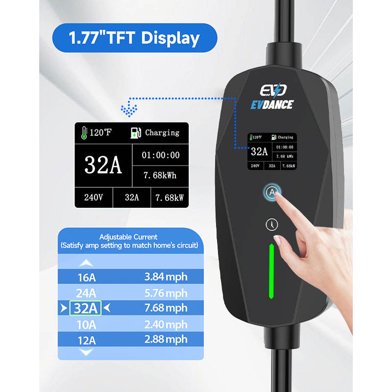 เครื่องชาร์จรถยนต์ EV 7kw AC เชิงพาณิชย์7kw แอป Tuya เครื่องชาร์จระดับ2แบบพกพาป้องกัน IP66ใหม่