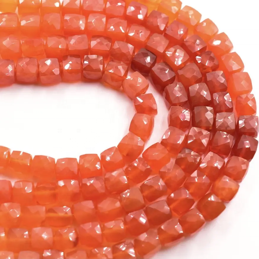 กล่องเหลี่ยมเพชรพลอยคาร์เนเลี่ยนธรรมชาติขนาด7มม. 8มม. ลูกปัดทรงลูกบาศก์อัญมณีหลวมเครื่องประดับลูกปัดหรูหราสินค้าขายส่ง