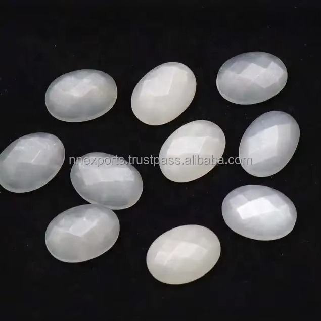 พลอยมูนสโตนสีขาวธรรมชาติขนาด 7 มม. 9 มม. รูปไข่ทรงเรียบ ขัดเงา แบบคาโบชอง จำหน่ายออนไลน์จากผู้ผลิตในราคาโรงงาน