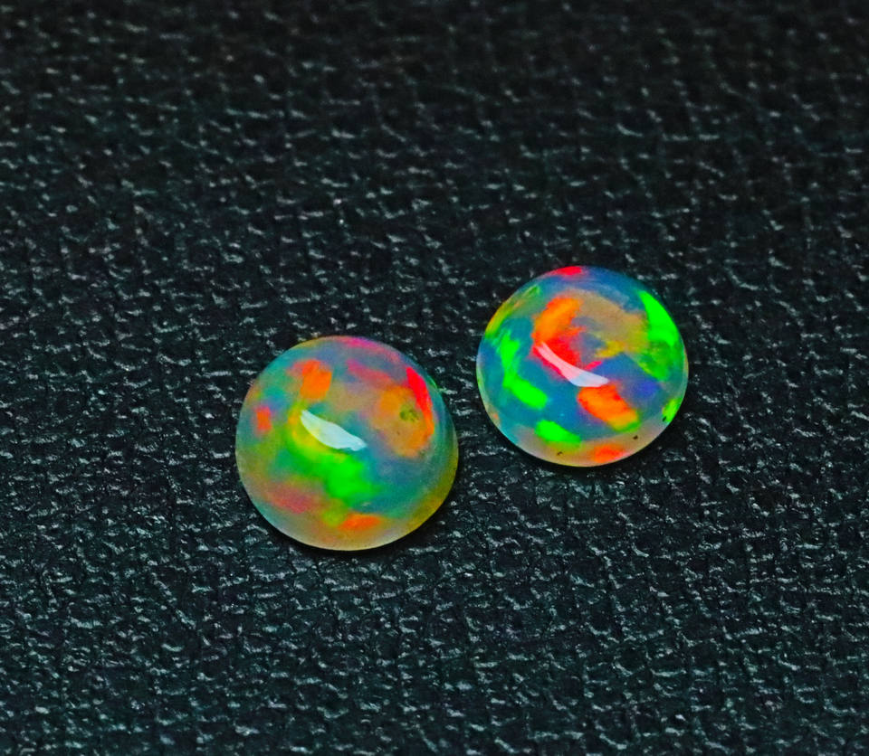 โอปอลเอธิโอเปียทรงกลมขนาด 7 มม. พลอยธรรมชาติแบบคาโบชอง - โอปอลเวโลหลายสี - พลอยหลวมคุณภาพสูงขัดเงาเรียบเนียน