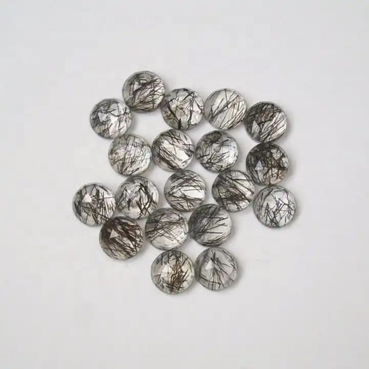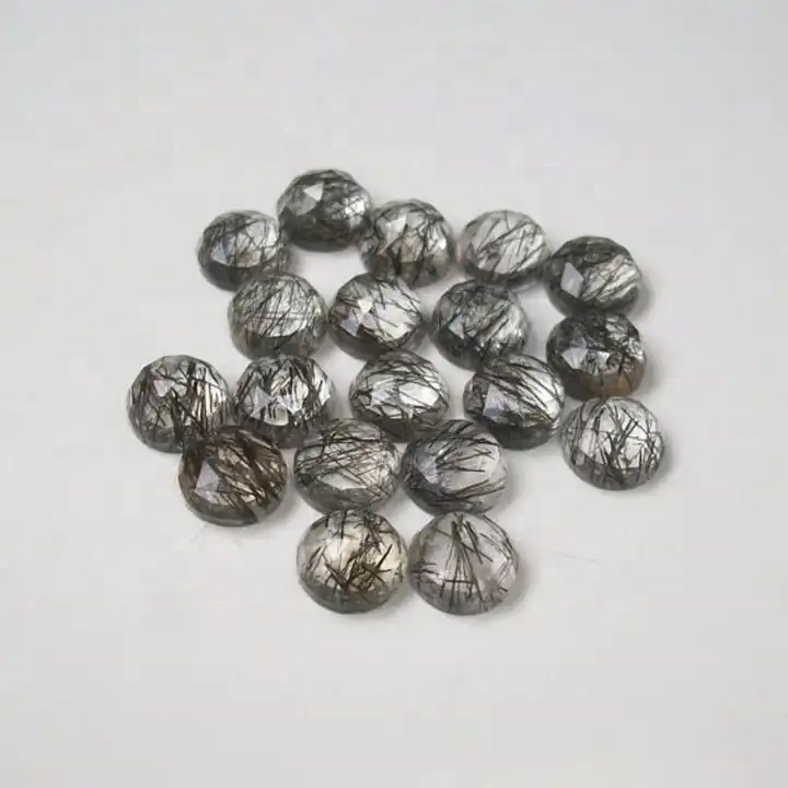 หินควอตซ์เจียระไนแบบกลมเพชรธรรมชาติสีดำ7มม. พลอยแบนได้รับการรับรองคุณภาพจากผู้ผลิตปกติ