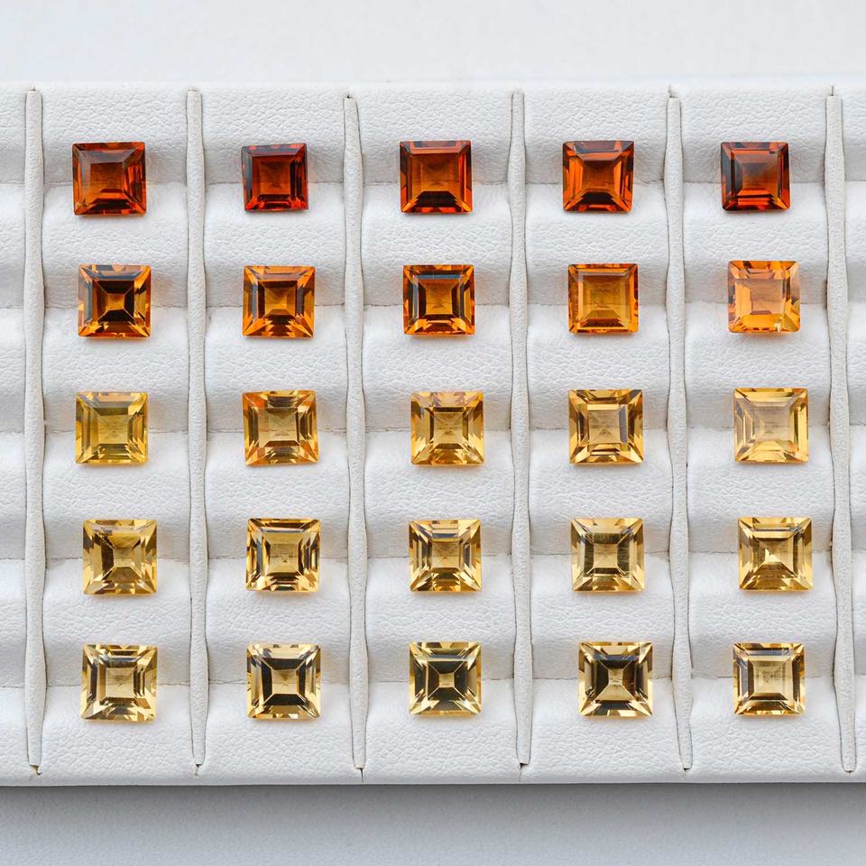 เครื่องประดับพลอยซิทรินเจียระไนทรงสี่เหลี่ยมธรรมชาติขนาด7มม. หินซิทรินบำบัดจากผู้ผลิตรายปุระ