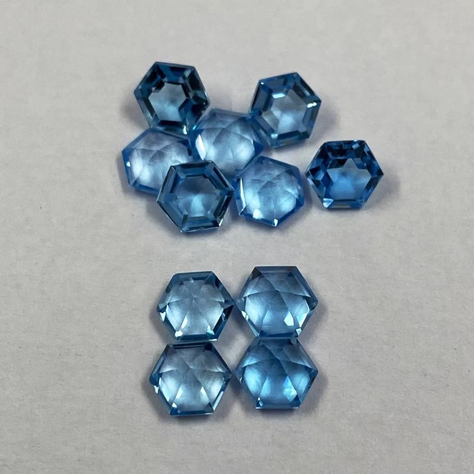 พลอยบลูโทแพซธรรมชาติจากสวิสเซอร์แลนด์ ขนาด 7 มม. รูปทรงหกเหลี่ยมเจียระไน ได้รับการรับรอง คุณภาพดี เหมาะสำหรับทำเครื่องประดับ ขายส่ง สินค้ามาแรง