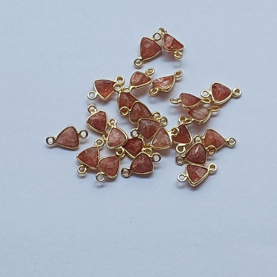 7mm Trillion Shape Natural Sunstone Pendant 925 Sterling Silver Bracelet Handmade Jewelry Findings Charm Link Connector Gemstone