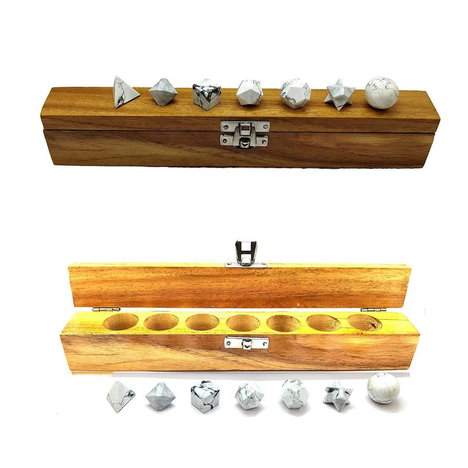 ชุดคริสตัลบำบัด7ชิ้นหินฮาวไลต์กึ่งมีค่ารูปทรงเรขาคณิต platonic