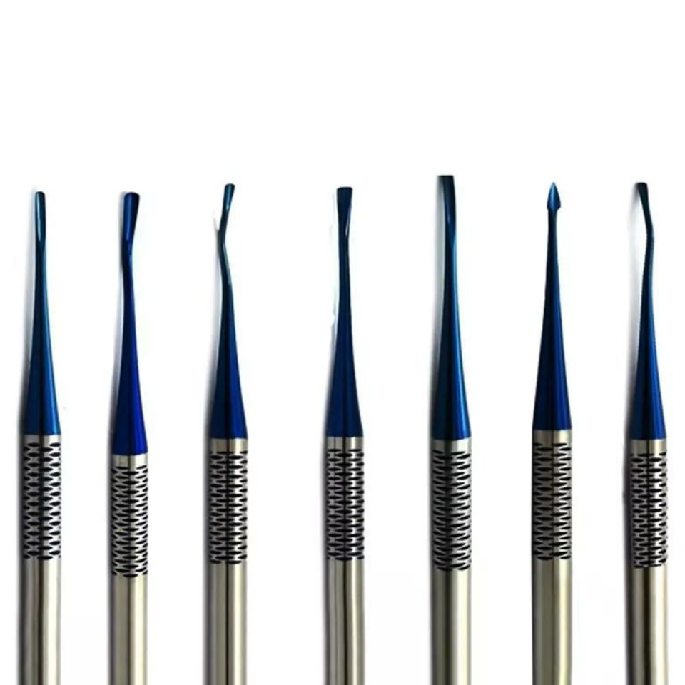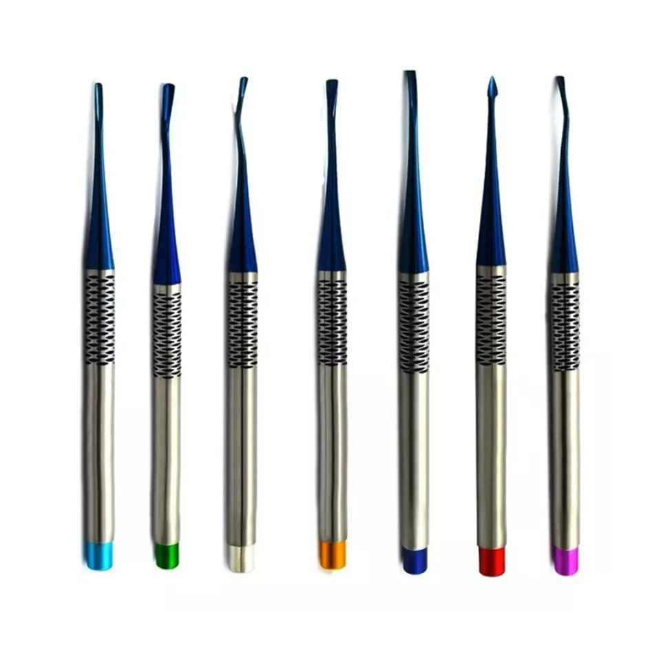 ชุดเครื่องมือถอนฟันแบบแมนนวล 7 ชิ้น ทำจากสแตนเลสสตีล ประกอบด้วยเครื่องมือ Spade Elevator และ PDL Luxating Instruments บรรจุในกล่อง สำหรับคลินิกทันตกรรม