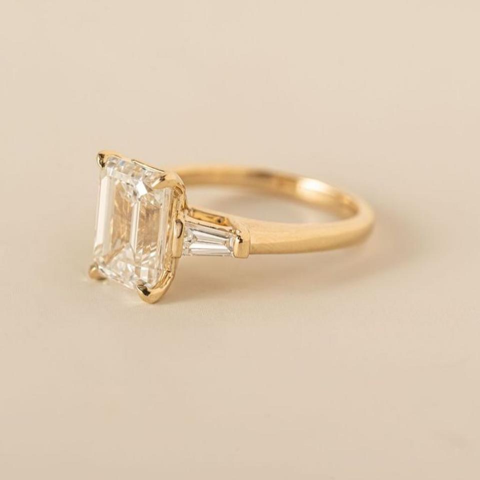 แหวนเพชร CZ ทรงมรกต7x10มม. ด้านข้างเรียว925งานหมั้นชุบทองเงิน