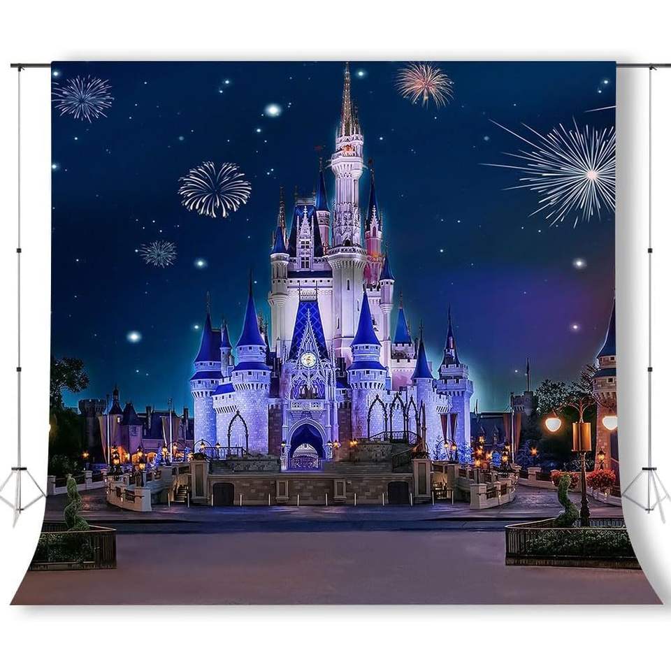 7x5FT ฉากหลังปราสาทดอกไม้ไฟสีทองสำหรับงานปาร์ตี้ถ่ายรูปสามารถปรับแต่งได้สำหรับเด็ก