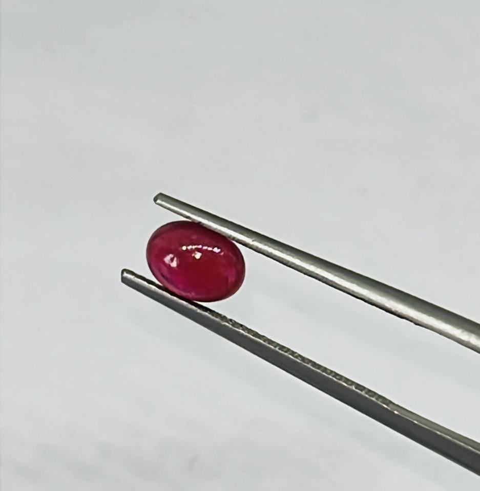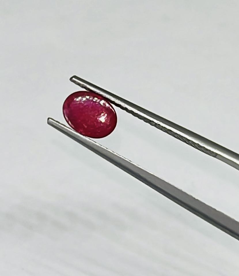 ทับทิมสีแดงธรรมชาติทรงวงรีทรงตัดขนาด7x5มม. พร้อมไส้แก้ว