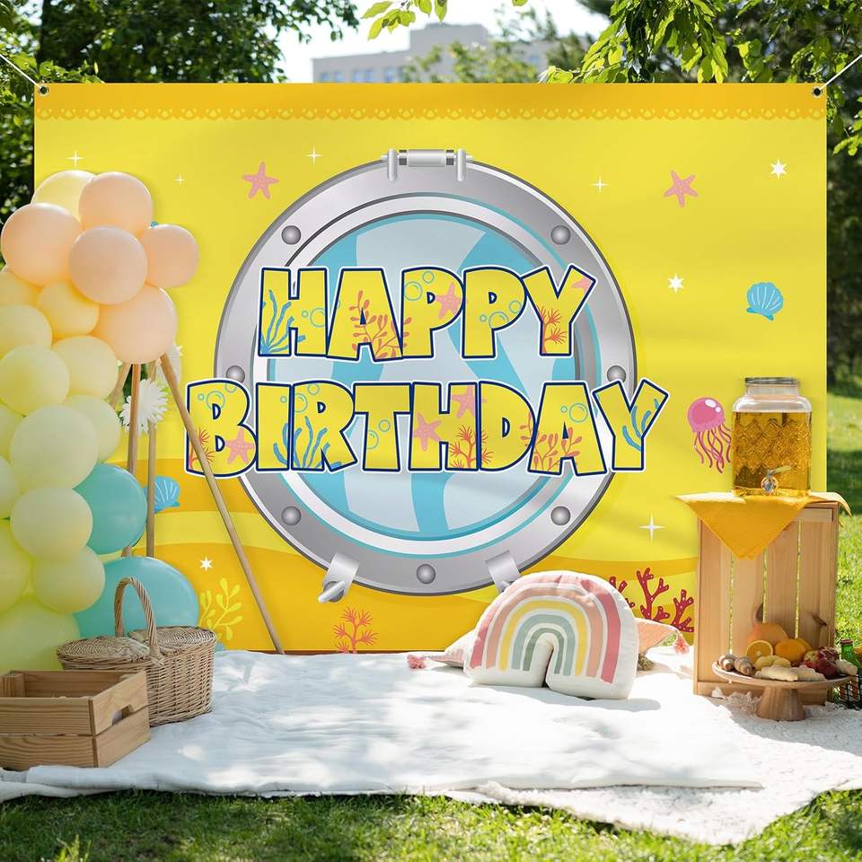7x5ft ฟองน้ำสีเหลืองสำหรับฉากหลังลายการ์ตูนใต้ท้องทะเลสำหรับตกแต่งงานเลี้ยงวันเกิดพื้นหลังรูปพัดน้ำทะเล