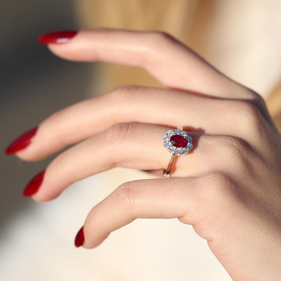 แหวนเพชร CZ ทรงวงรีทรงวงรีขนาด7x5มม. สีแดงอัญมณีอัญมณีสำหรับงานแต่งงานเครื่องประดับสำหรับเจ้าสาวชุบทอง18K สีเหลือง