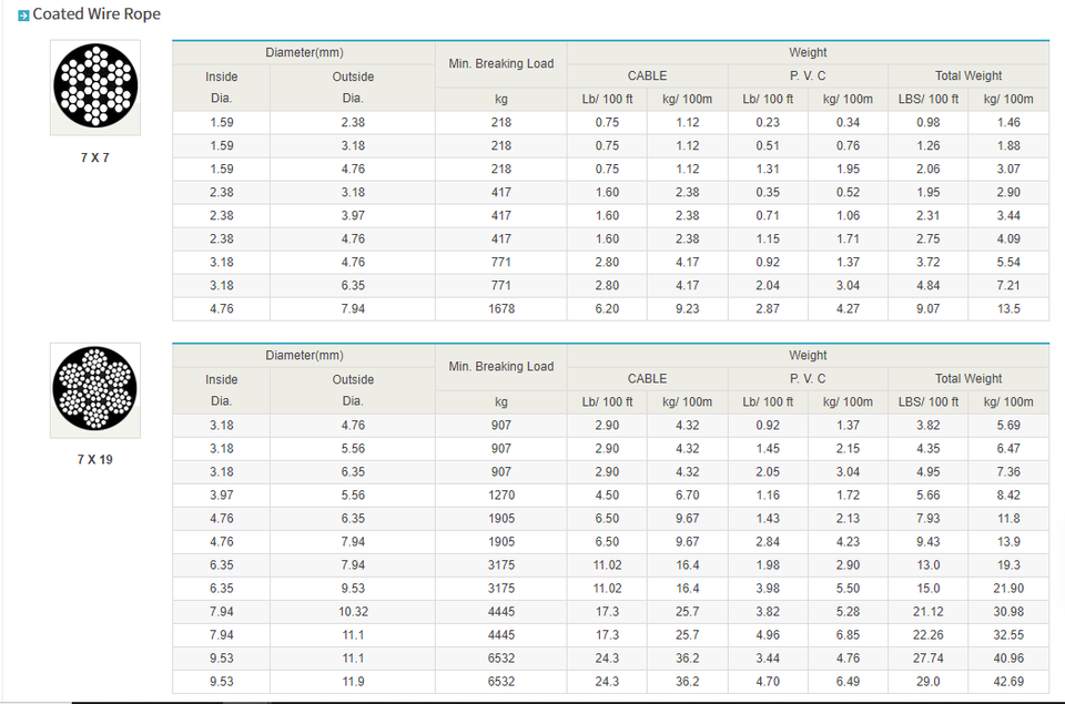G.a.c (สายเคเบิลเครื่องบินชุบสังกะสี) & เชือกเคลือบพีวีซี & สายเคเบิลภายใน