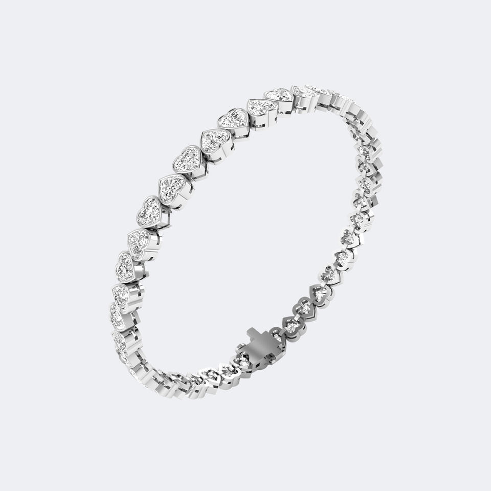สร้อยข้อมือเพชรทรงหัวใจ 8.00 กะรัต รับรองโดย IGI ชุบทอง 10K ความใส VVS2 สี E ระดับความเจิดจรัส ของขวัญแต่งงาน