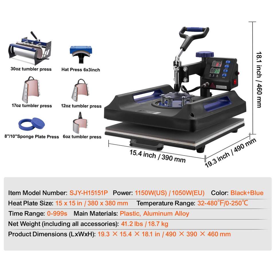 เครื่องรีดร้อนดิจิตอล 8 in 1 ขนาด 15 x 15 นิ้ว สำหรับแก้วน้ำขนาด 30 ออนซ์ แบบหมุนได้ 360 องศา สำหรับเสื้อยืด เครื่องรีดร้อนที่ทนทานกว่า