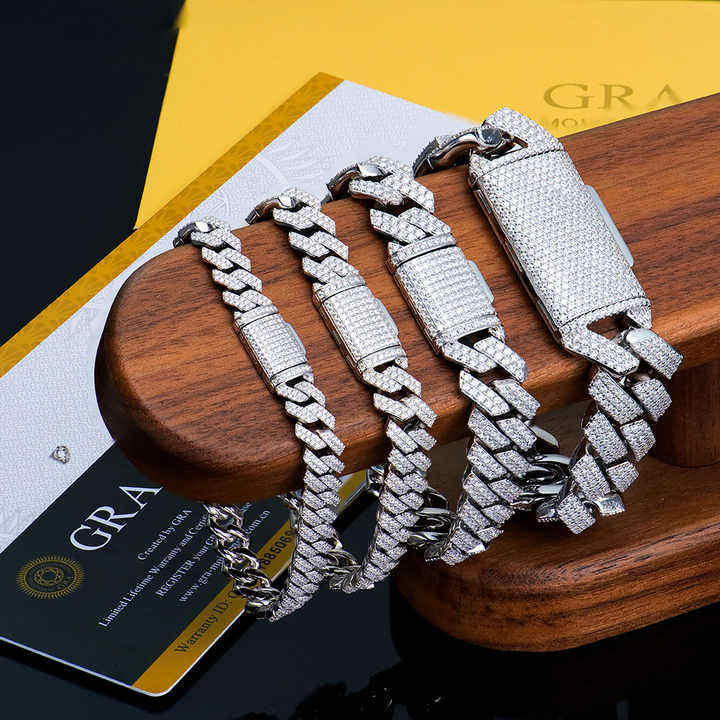 กำไล S925เงินแท้8/10/12/14มม. กำไลข้อมือเงินฮิปฮอปเพชรลิ้งค์ประกายเพชรโมอิสซาไนต์คิวบา