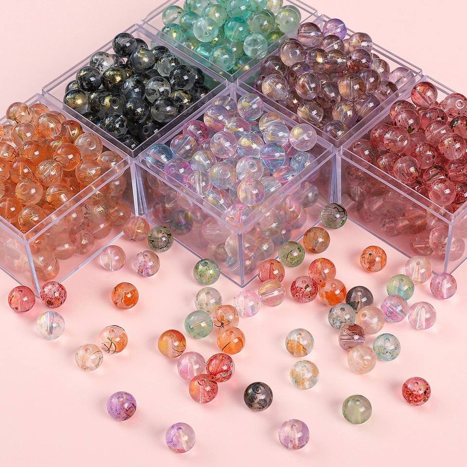 8-10MM Transparent Water-based Ink Stained Gold-sprinkled Irregular Shape JC Brand Glass Beads DIY Handmade Materials Necklaces