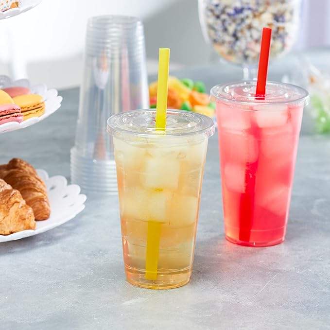 แก้วพลาสติกใสคุณภาพสูงแบบใช้แล้วทิ้ง ขนาด 8 12 16 20 32 ออนซ์ ไม่มีหลอด สำหรับเครื่องดื่ม กาแฟ พร้อมฝาปิด เหมาะสำหรับร้านค้าและงานปาร์ตี้