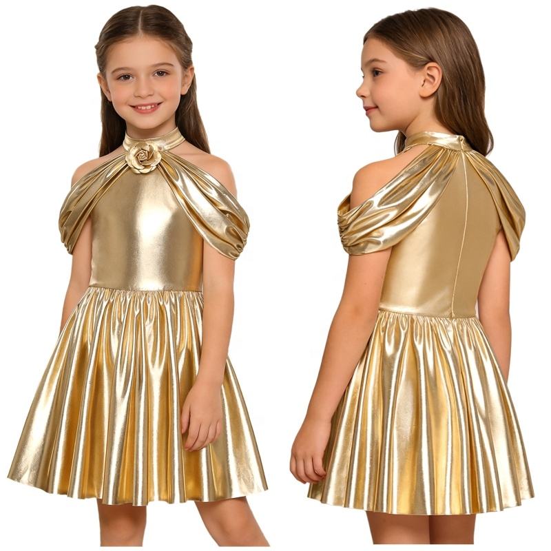 ชุดเต้นรำเด็กผู้หญิงอายุ 8-16 ปี ชุดเดรสเมทัลลิกทรงเอไลน์ สำหรับการแสดงบนเวที งานเต้นรำบอลรูม งานปาร์ตี้ การแสดงบนเวที และงานปาร์ตี้ต่างๆ