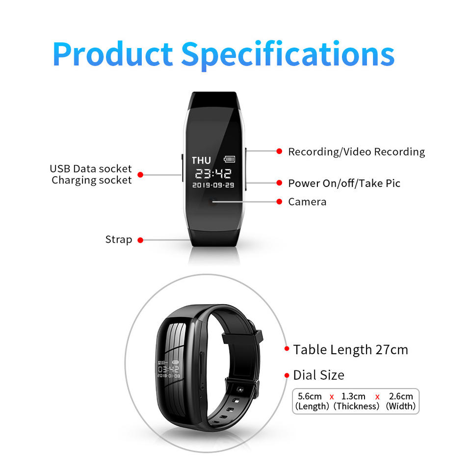 กล้องวิดีโอขนาดเล็กซิลิโคน 8-256GB นาฬิกาหน้าจอสัมผัส ปฏิทิน เครื่องบันทึกเสียง บันทึกเสียงพูด USB แฟลชไดรฟ์ กันน้ำ IP65 ลดเสียงรบกวน