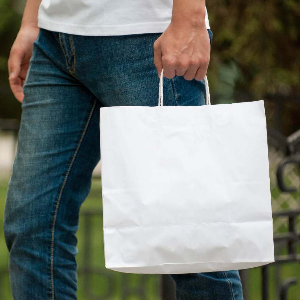ถุงกระดาษคราฟท์สีขาวขนาด8.5 "X 4.3" x 10.5 "พร้อมที่จับถุงของขวัญรีไซเคิลได้พิมพ์ลายตา