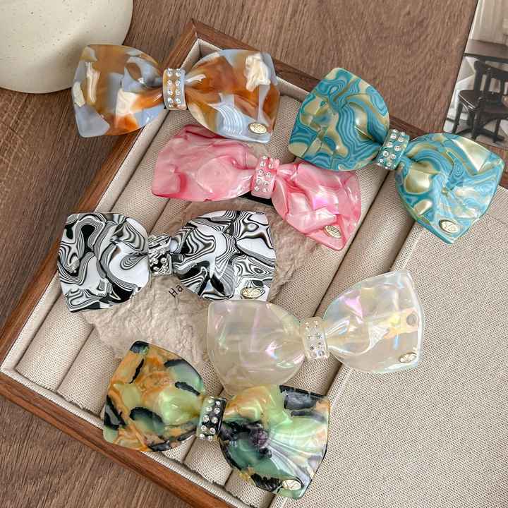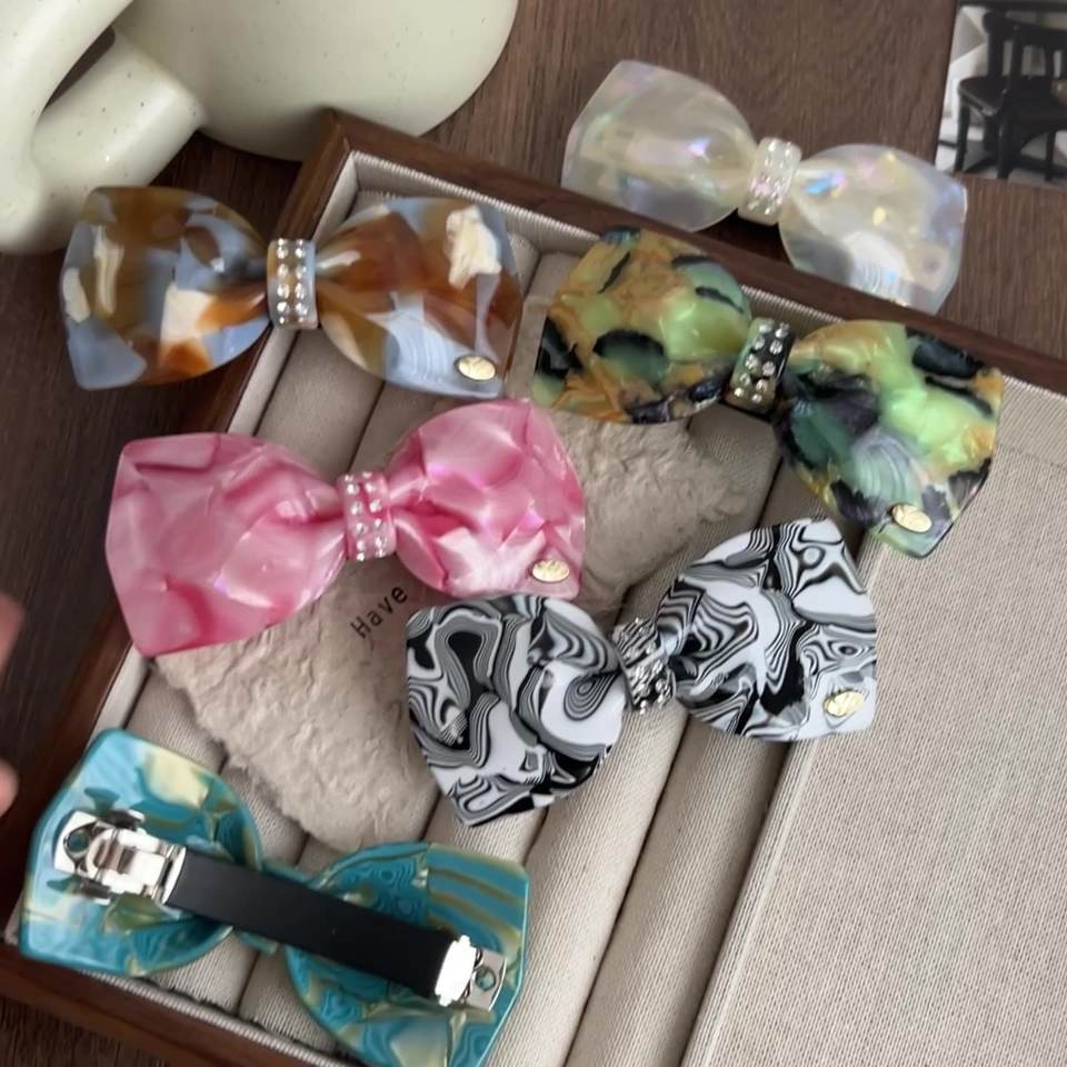กิ๊บติดผมโบว์อะซิเตทขนาดใหญ่แบบฝรั่งเศส 8.5 ซม. ประดับด้วยคริสตัล ดีไซน์หรูหราสำหรับเด็กผู้หญิง