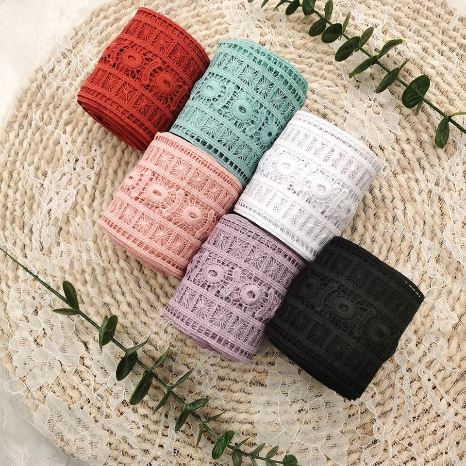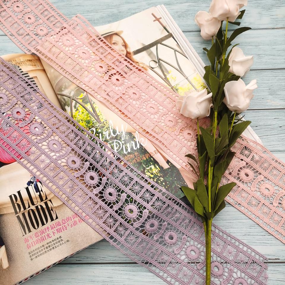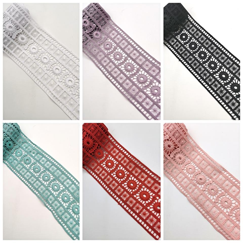 แผ่นลูกไม้เคมีทำจากโพลีเอสเตอร์ขนาด8.5ซม. มีรูปแบบการปัก CBL0655-1มีหลายสีให้เลือกสำหรับการตัดเย็บและการประดิษฐ์
