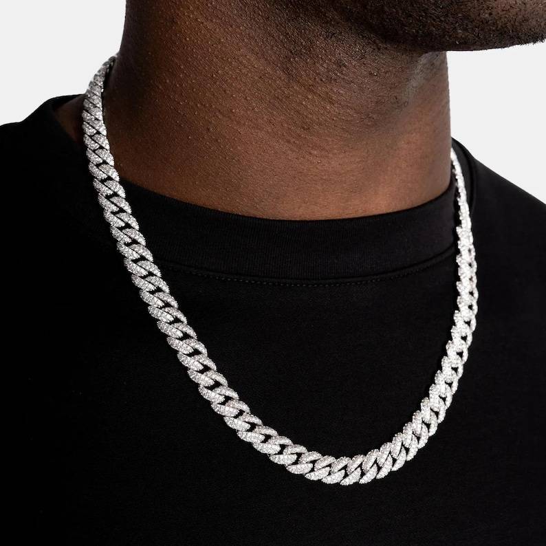 สร้อยคิวบันเพชร 8.5 มม. แบบ Iced Out สไตล์ฮิปฮอปสำหรับเขา ของขวัญสุดหรูสำหรับแฟนหนุ่ม เครื่องประดับแฟชั่นเงินแท้ 925