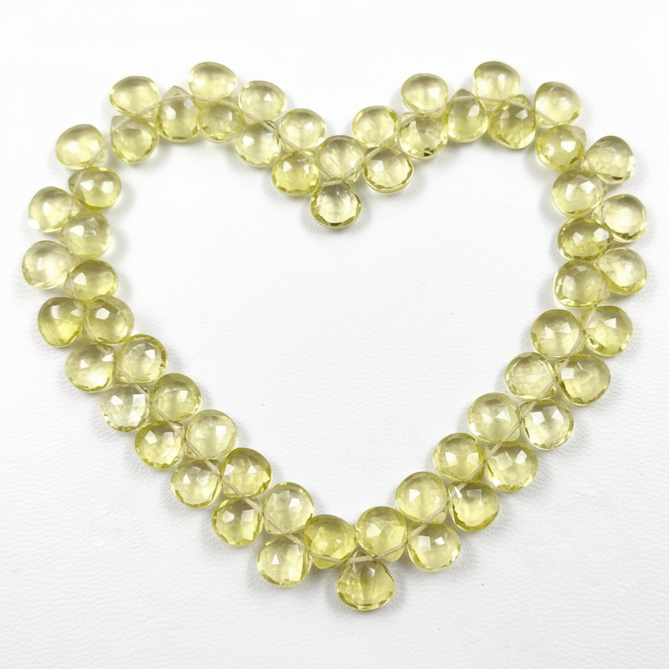 ลูกปัด Briolette ขนาด8-8.5มม. ลูกปัดคริสตัลสีเหลืองมะนาวธรรมชาติขนาด8.5