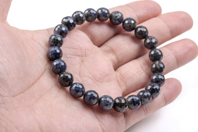 สร้อยข้อมือลูกปัดอะเวนเจอรีนสีน้ำเงินขนาด 8-9 มม. คุณภาพเยี่ยม เกรดพรีเมียม พลอยธรรมชาติทรงกลมเหลี่ยมเล็กๆ เปลี่ยนสีได้