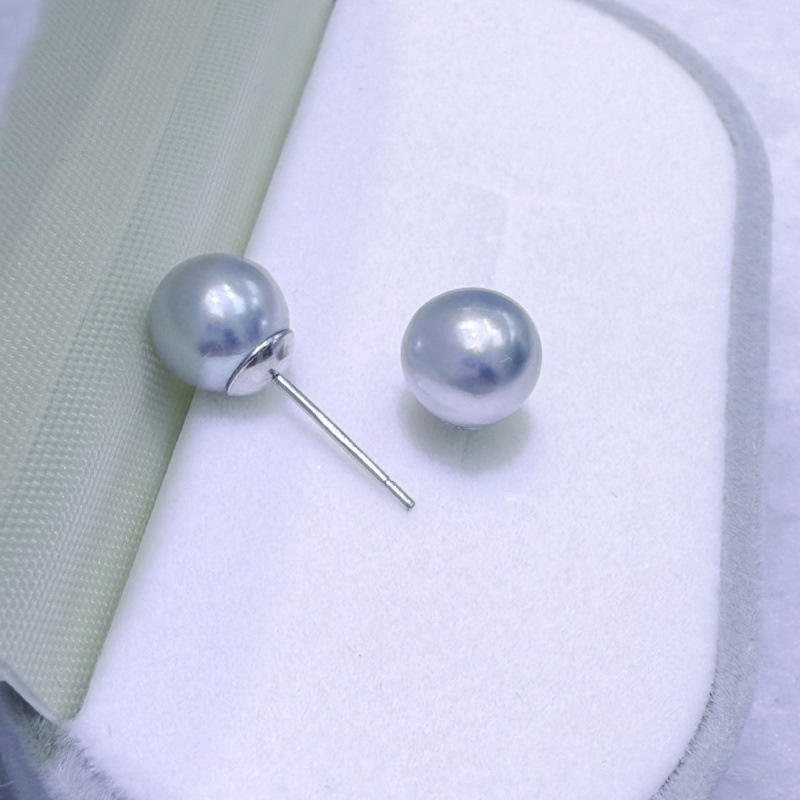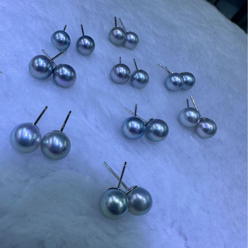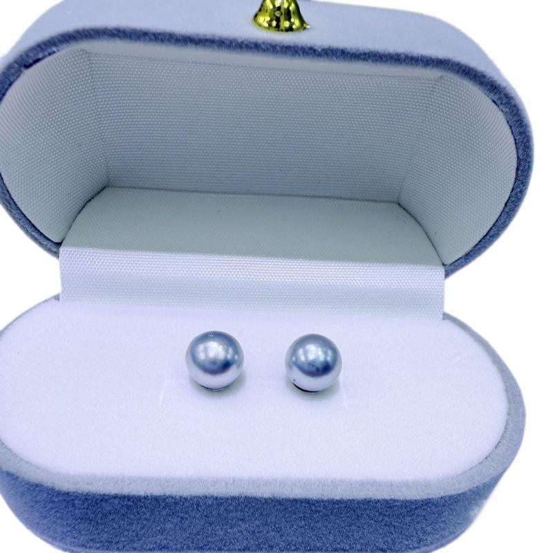 ต่างหูเงินแท้ทรงกลม 8-9 มม. ประดับมุกอะโกย่าแท้จากน้ำทะเล รุ่นใหม่ 25 ชิ้น พร้อมกล่องสำหรับผู้หญิง ดีไซน์หรูหรา