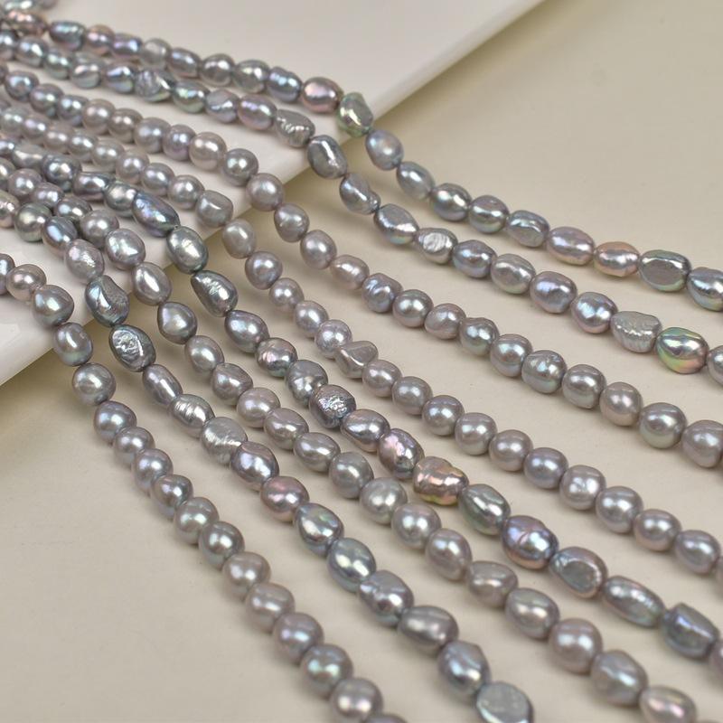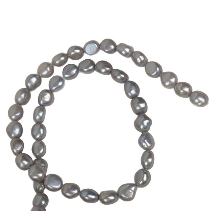ไข่มุกน้ำจืดธรรมชาติสีเทาอ่อน ขนาด 8-9 มม. แบบสองด้าน สำหรับทำเครื่องประดับ DIY สร้อยคอทำมือ ไข่มุกสีขาว