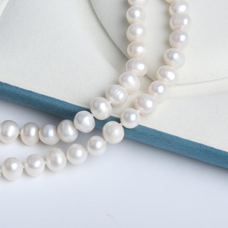 สร้อยคอไข่มุกน้ำจืดธรรมชาติขนาด 8-9 มม. พร้อมตัวล็อคแบบแท่ง สร้อยคอพรีเมียมสำหรับเสื้อสเวตเตอร์ พร้อมสายคล้องคอ