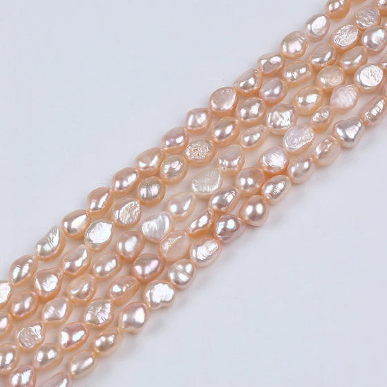 สร้อยไข่มุกน้ำจืดธรรมชาติสีขาวขนาด 8-9 มม. ยี่ห้อเวนชิ จากจีน แบบกึ่งสำเร็จรูป ร้อยเป็นเส้น รูตรงสองด้าน สำหรับงาน DIY เครื่องประดับ
