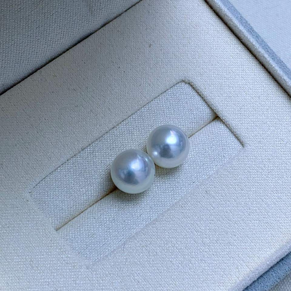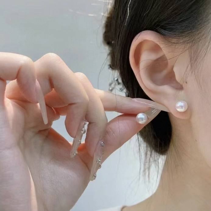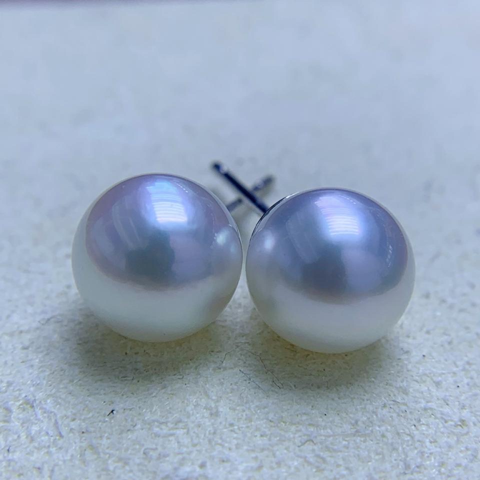 ต่างหูมุกน้ำจืดทรงกลม 8-9 มม. สีออโรร่า เงินแท้ S925 ดีไซน์เรียบง่าย แท้เกือบไร้ตำหนิ