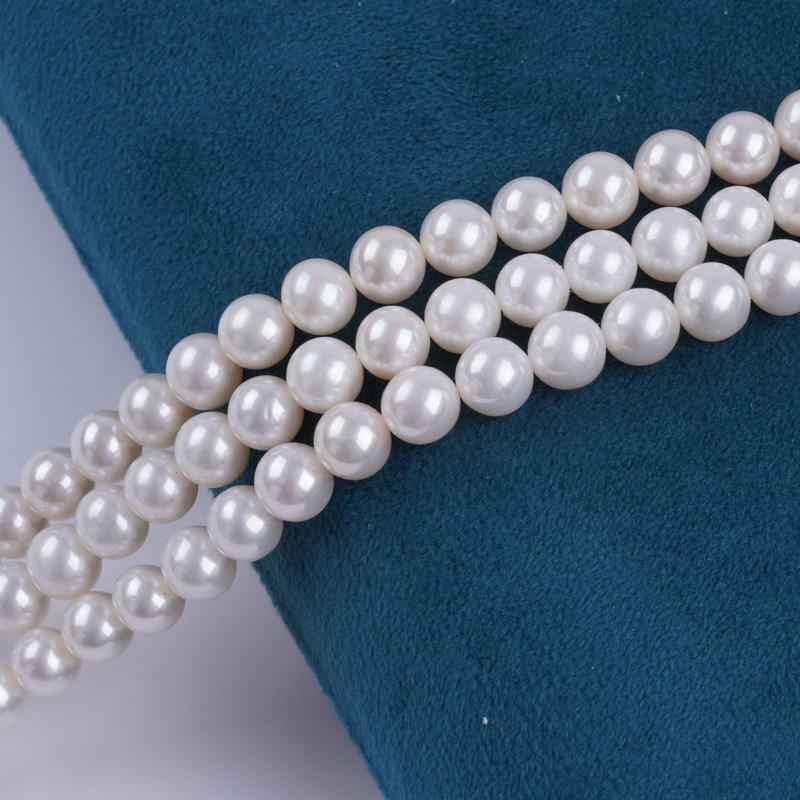 สร้อยไข่มุกน้ำจืดทรงกลมขนาด 8-9 มม. เคลือบน้ำมันเงางาม แบบกึ่งสำเร็จรูปสำหรับงาน DIY ไข่มุกหลวมขายส่งจากจูจี