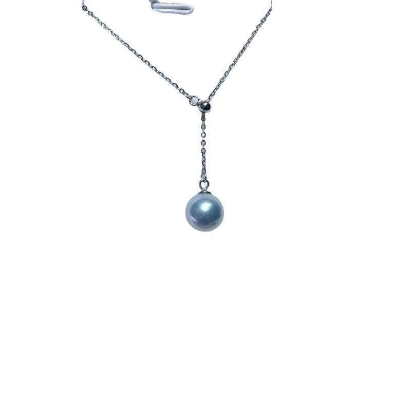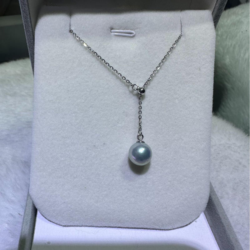 สร้อยคอมุกธรรมชาติจูจี้ 8-9 มม. พร้อมสร้อยเงินแท้รูปตัว Y สไตล์เรียบหรู รองรับการดรอปชิป