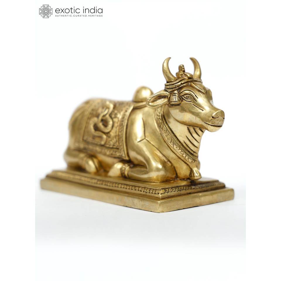 รูปปั้น Nandi ทองเหลือง8นิ้วพร้อม shivalinga ด้านหลังประติมากรรมหรูหราสำหรับตกแต่งบ้านของขวัญและวิหารทำในอินเดีย