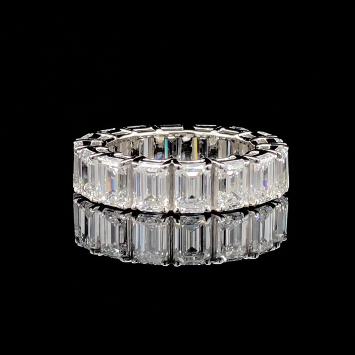 แหวนแต่งงานเพชรเพาะเลี้ยง 8 กะรัต ทรงเอเมอรัลด์ รับรองโดย SGL แบบเต็มวง