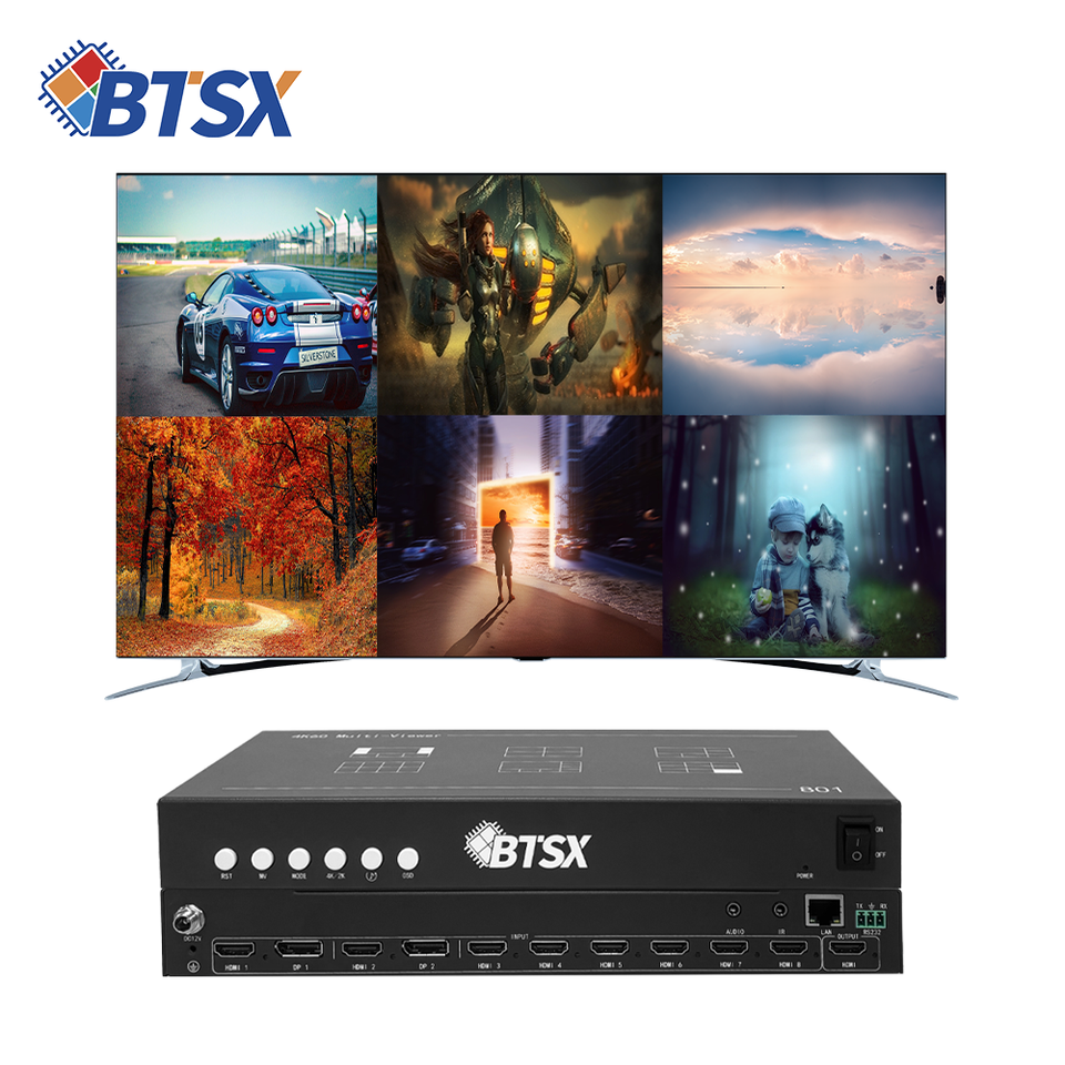 ตัวแยกสัญญาณวิดีโอ HDMI DP 8 ช่อง พร้อมโปรเซสเซอร์วิดีโอ รองรับการสลับภาพแบบไร้รอยต่อ และการจัดวางแบบกำหนดเอง 15x15