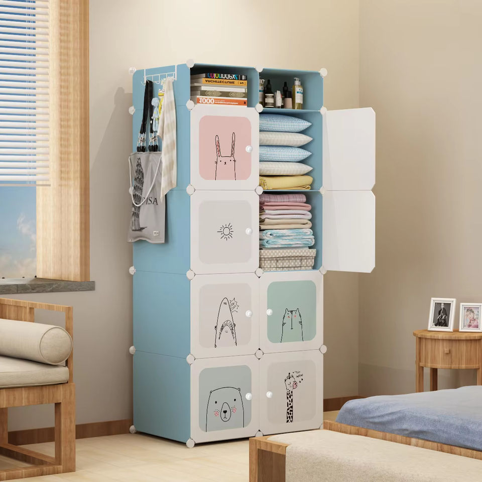 ตู้เก็บของ8ประตูพร้อมชั้นกริดสำหรับจัดระเบียบเสื้อผ้า