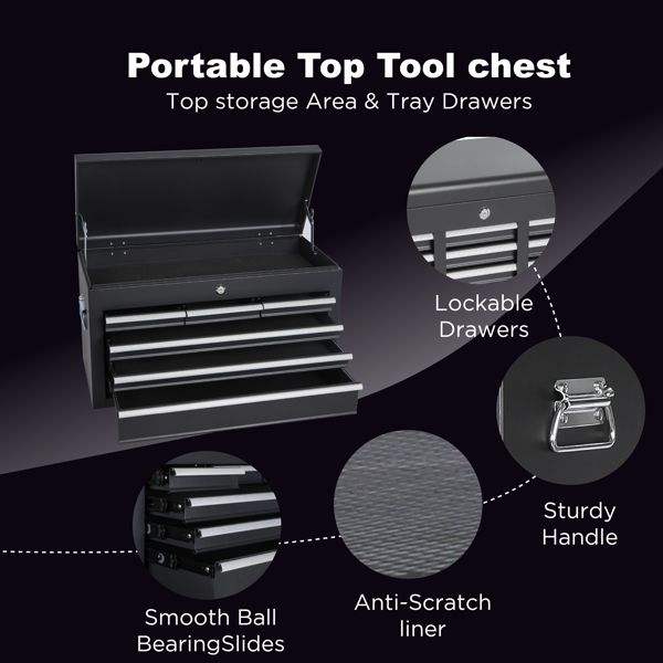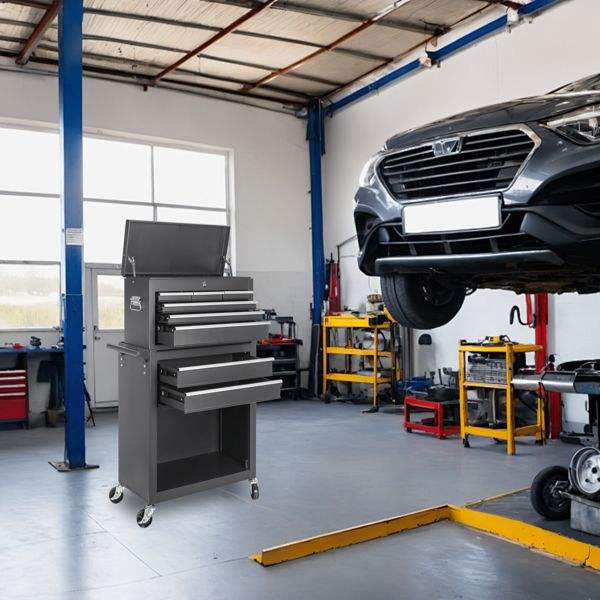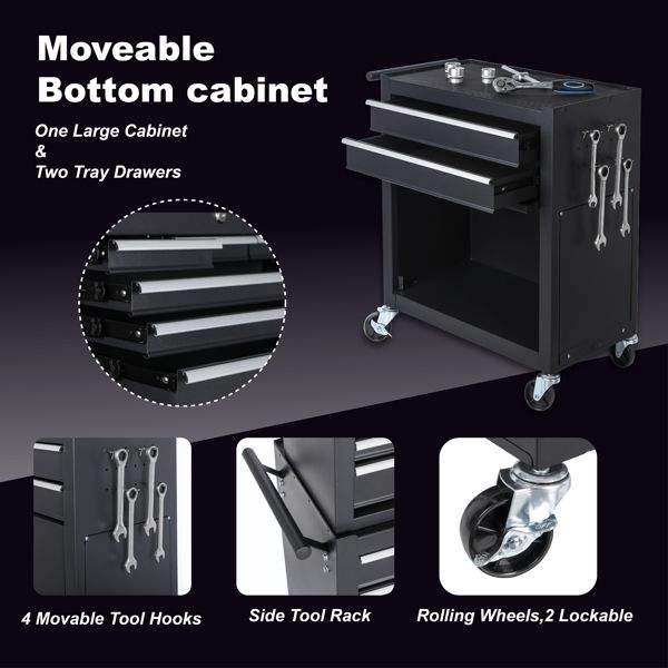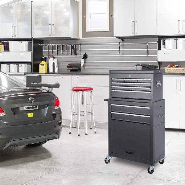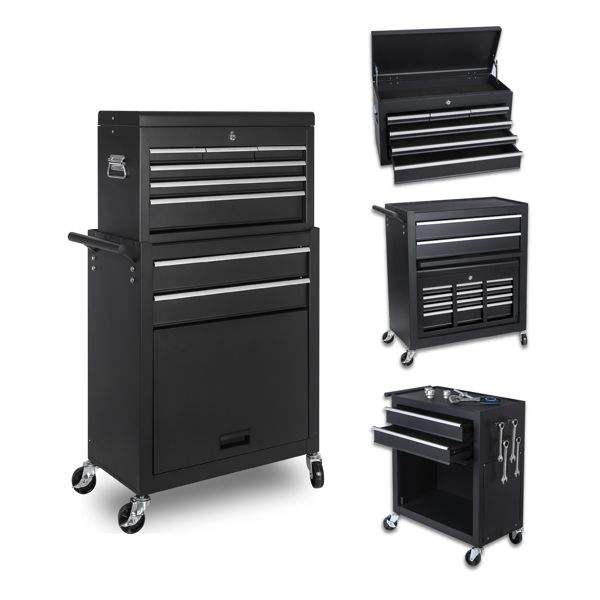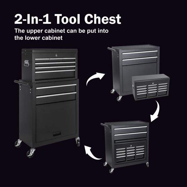 ตู้เก็บเครื่องมือแบบมีล้อเลื่อน 8 ลิ้นชัก ถอดประกอบได้ 2-in-1 พร้อมกล่องด้านบนแบบมีซับใน ล้อล็อคได้ และตะขอเกี่ยวด้านข้าง ตู้เก็บของที่ปลอดภัย