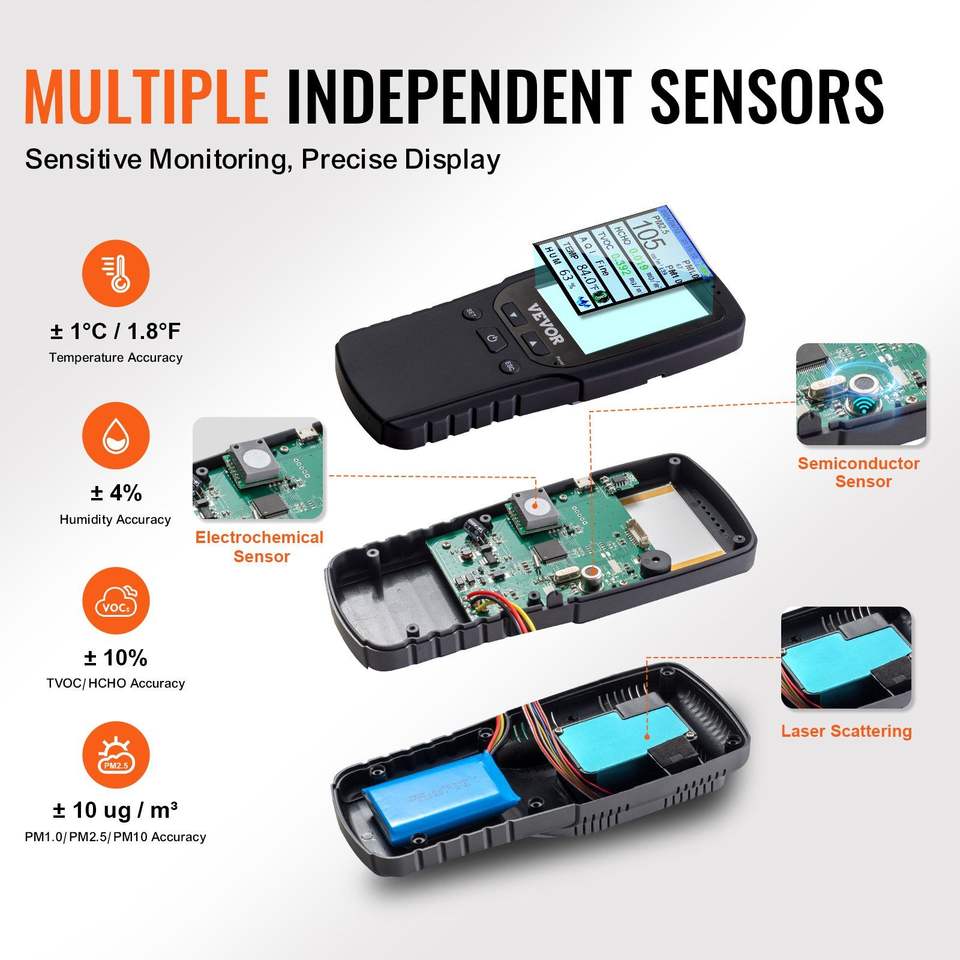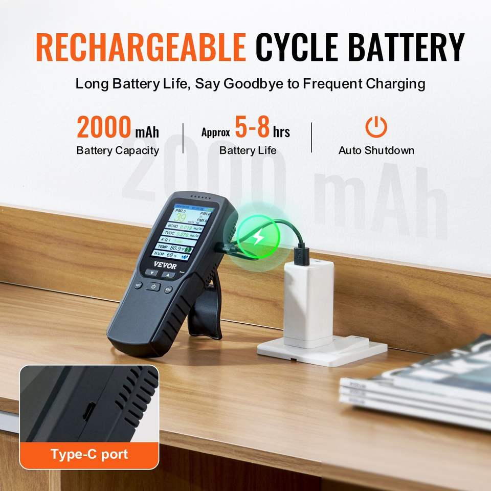 หน้าจอแสดงคุณภาพอากาศระดับมืออาชีพ8-in-1 PM2.5 PM10 PM1.0อนุภาคฟอร์มาลดีไฮด์อุณหภูมิความชื้น