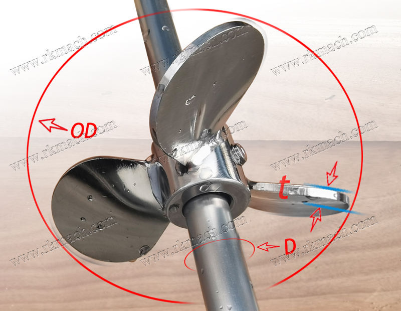 ใบพัดเรือขนาด 8 นิ้ว 200 มม. สำหรับผสมของเหลวและน้ำมัน แบบหมุนขวา รูขนาด 15 มม. (สำหรับเพลาขนาด 15 มม.)