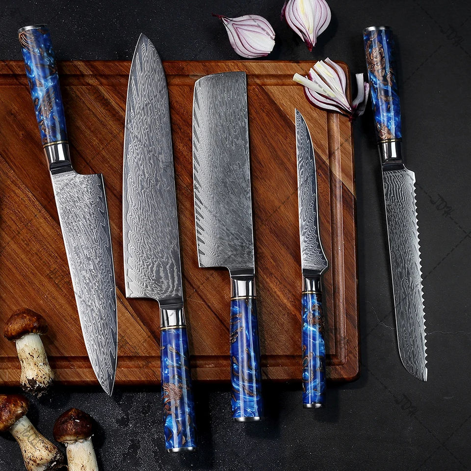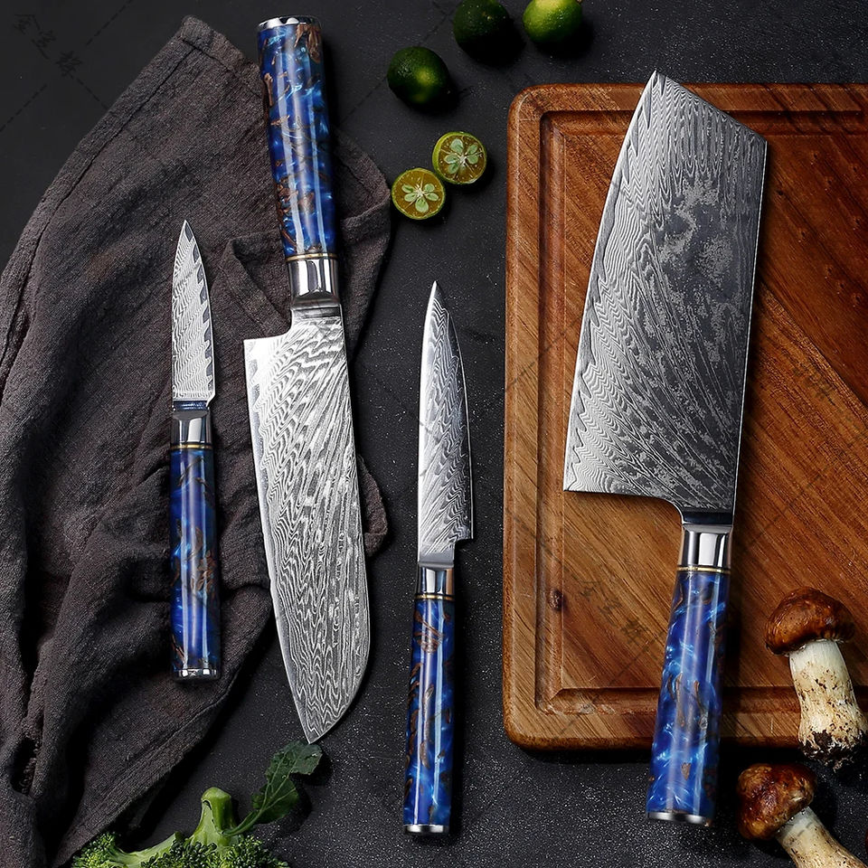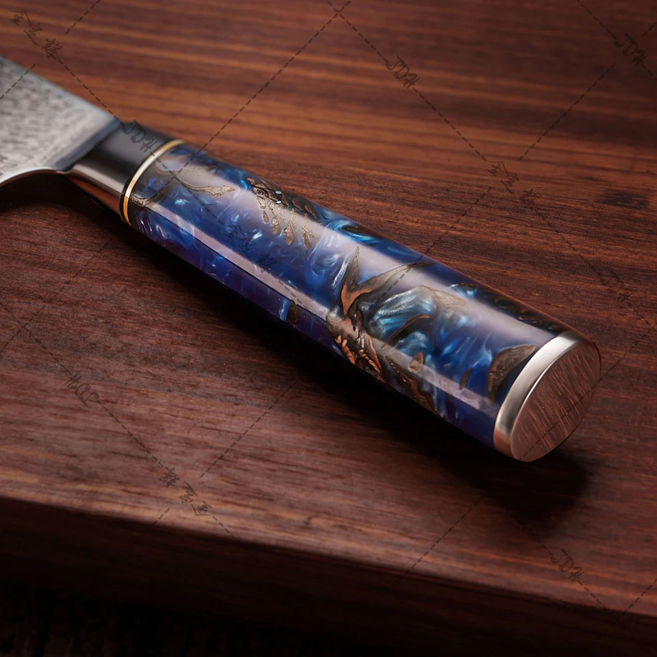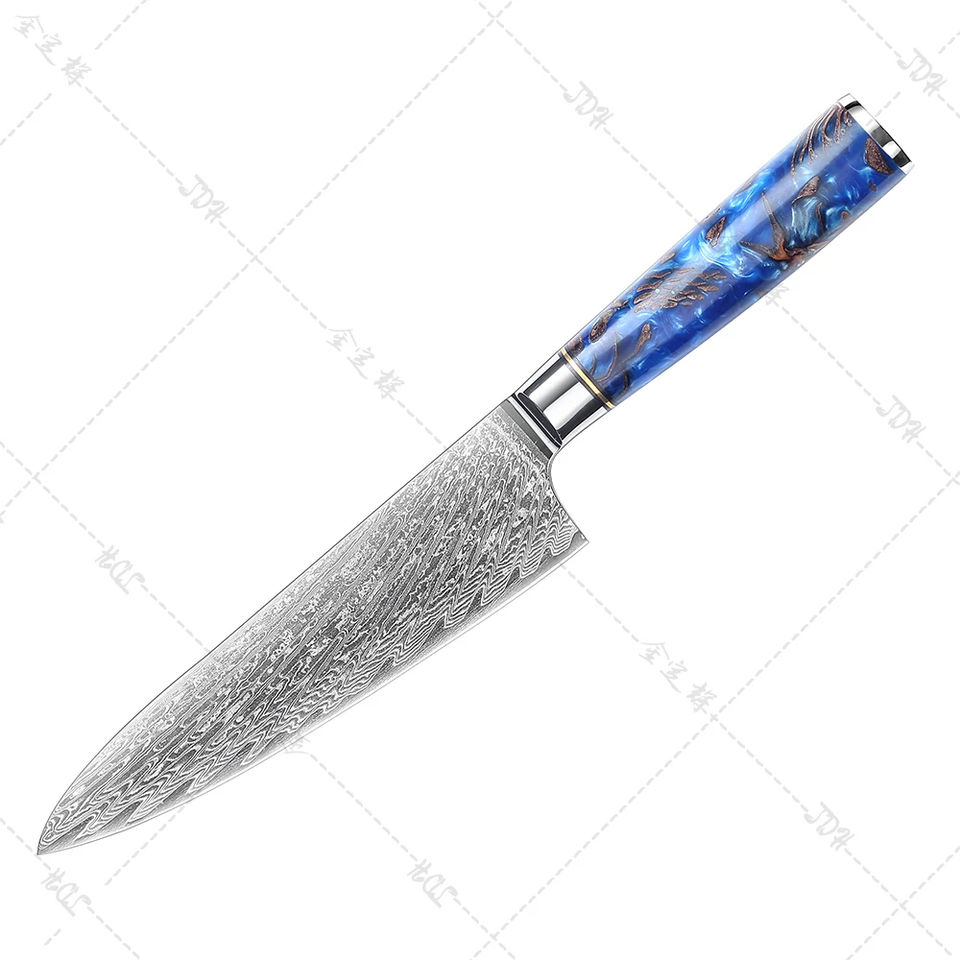มีดเชฟขนาด 8 นิ้ว มีดครัวดามัสกัส เหล็กดามัสกัส 67 ชั้น พร้อมด้ามอะคริลิก