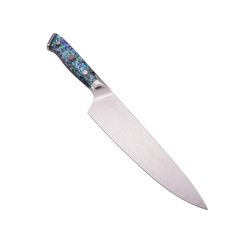 มีดดาบเหล็กดามัสกัสขนาด 8 นิ้ว มีดครัวเหล็กดามัสกัส 67 ชั้น พร้อมด้ามจับเปลือกหอยมุก