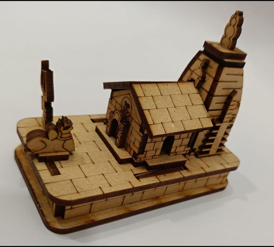 โมเดลไม้ MDF ขนาด 8 นิ้ว รูปวัดอโยธยา 3 มิติ สีน้ำตาล ของตกแต่งบ้าน ป้ายติดผนัง กล่องของขวัญไม้ ของสะสมตกแต่ง